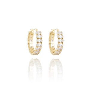 Merkimiðar: Dömur, Eyrnalokkahringir, Eyrnalokkar, Gyllað silfur, Með steinum, Sign